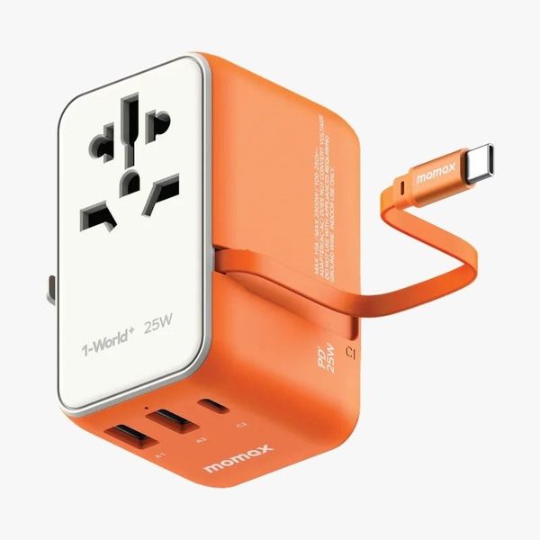摩米士-1-World+ 25W 3-插口 內建 USB-C 充電線 + AC 旅行充電插座 (橙色) #UA20UKM