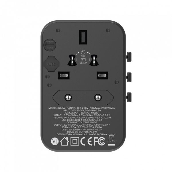 摩米士-1-World 70W 5-插口 + AC旅行充電插座 (黑) #UA8AUKD