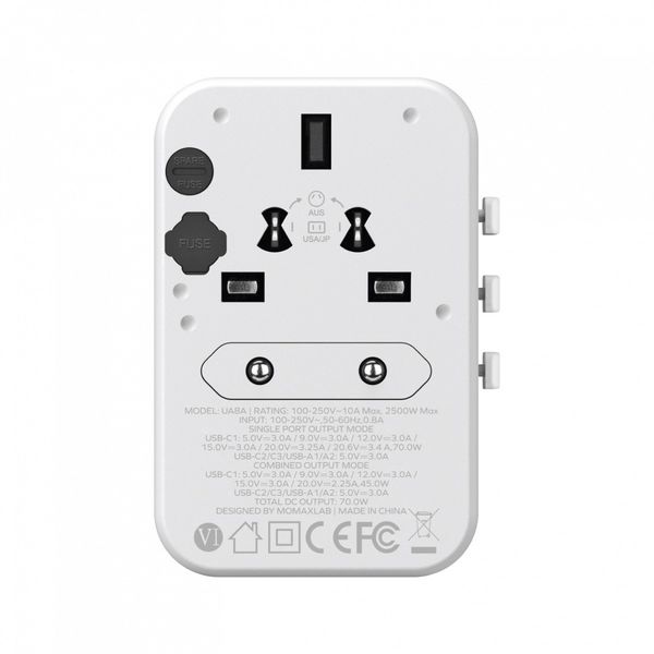 摩米士-1-World 70W 5-插口 + AC旅行充電插座 (白) #UA8AUKW