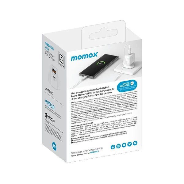 摩米士-ONEPLUG 25W雙輸出快速充電器 (英規) (白色) #UM56UKW