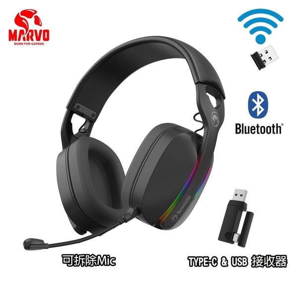 Marvo-HG9086W 無線 Gaming Headset 藍芽/2.4G Type-C(USB)/3.5mm 支持PC/Phone/Mac/iOS/PS4/PS5/Switch
