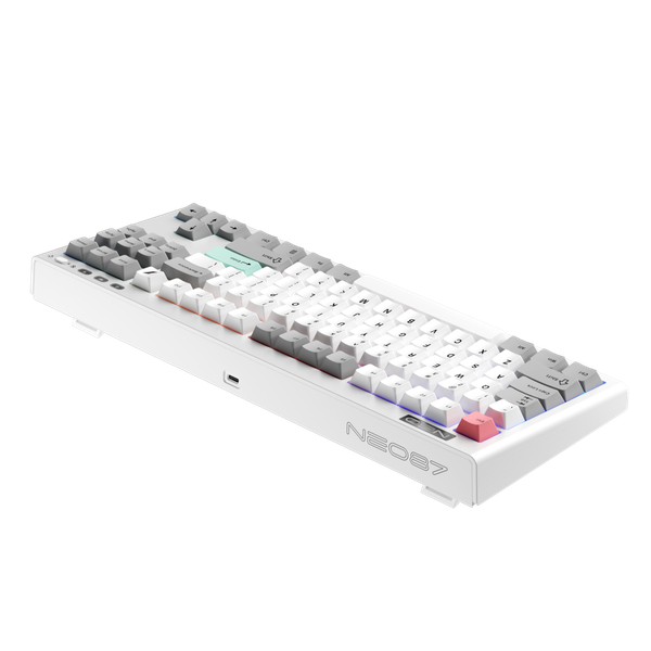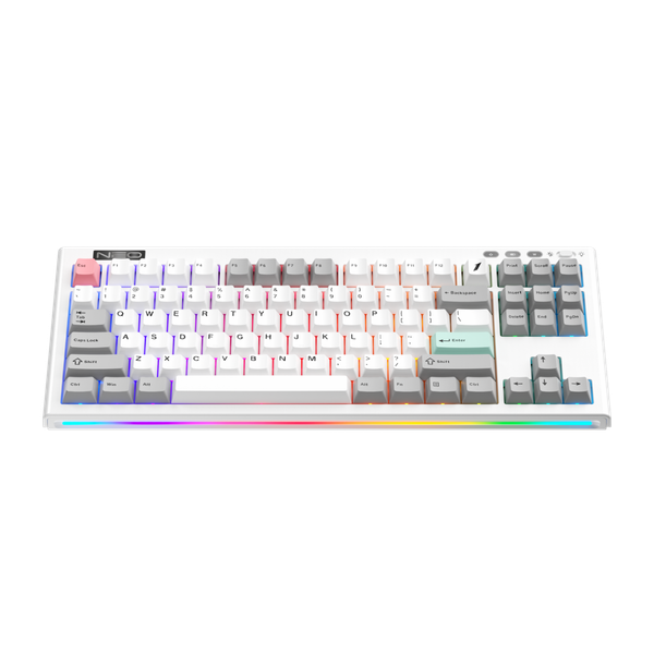 首席玩家-NEO87 Gaming Keyboard 紫軸+白配色 RGB 無線機械鍵盤 藍芽+2.4G無線+USB插線 88鍵 三種連接模式