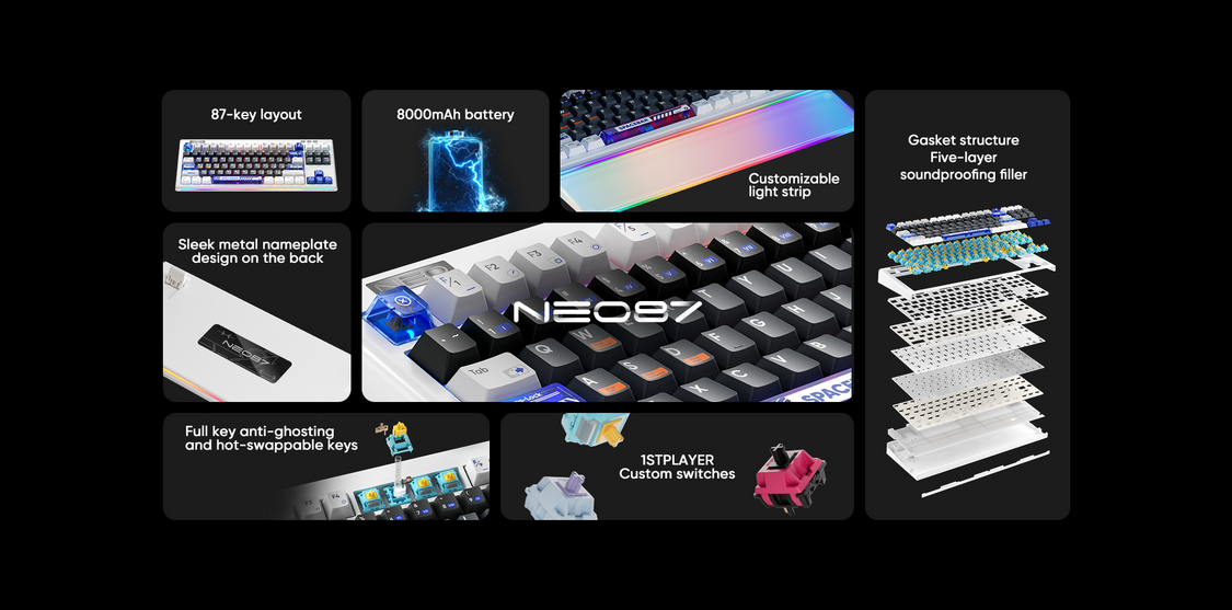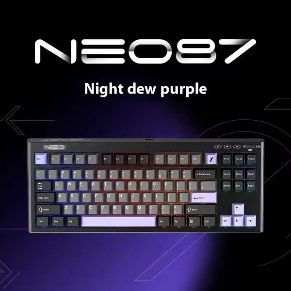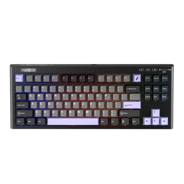 首席玩家-NEO87 Gaming Keyboard 紫軸+紫黑配色 RGB 無線機械鍵盤藍芽+2.4G無線+USB插線 88鍵 三種連接模式