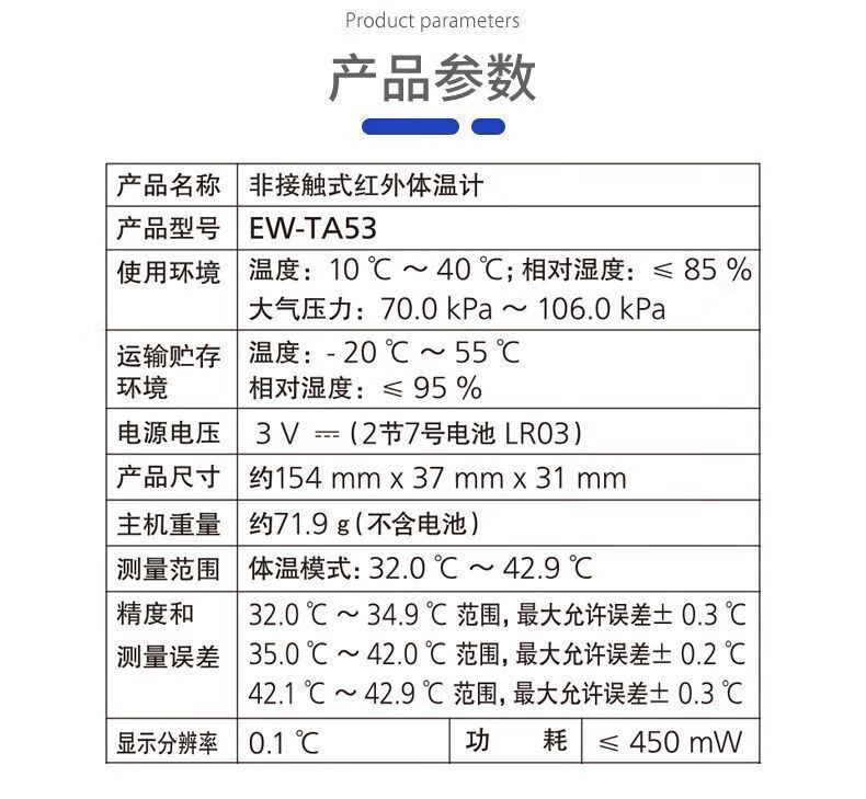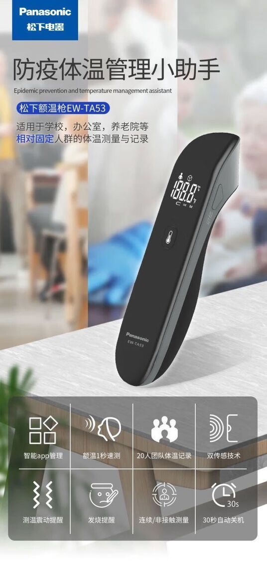 樂聲牌-額溫槍 EW-TA53 嬰幼兒成人用 32組體溫記錄 溫度計 測溫槍 體溫計 可連Panasonic Smart App (非耳探) [平行進口]