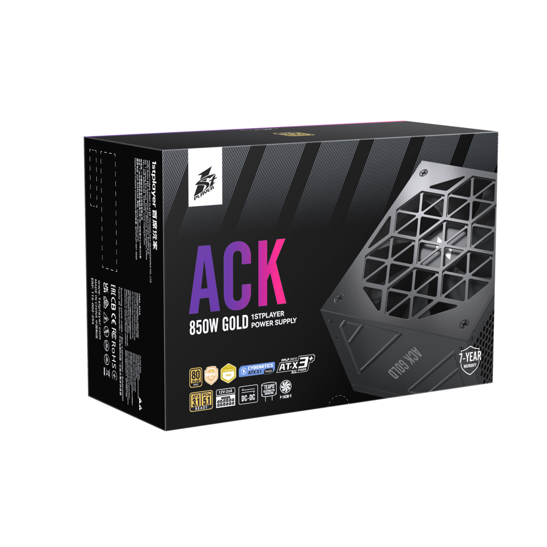 首席玩家-ACK850 80Plus 金牌認證電源 砌機火牛 Active PFC Power Supply 14cm FDB風扇 7年保養