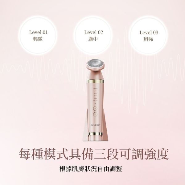 2. **強度可調**:共三階段強度可調整,可根據皮膚狀況調整每個模式的強度。