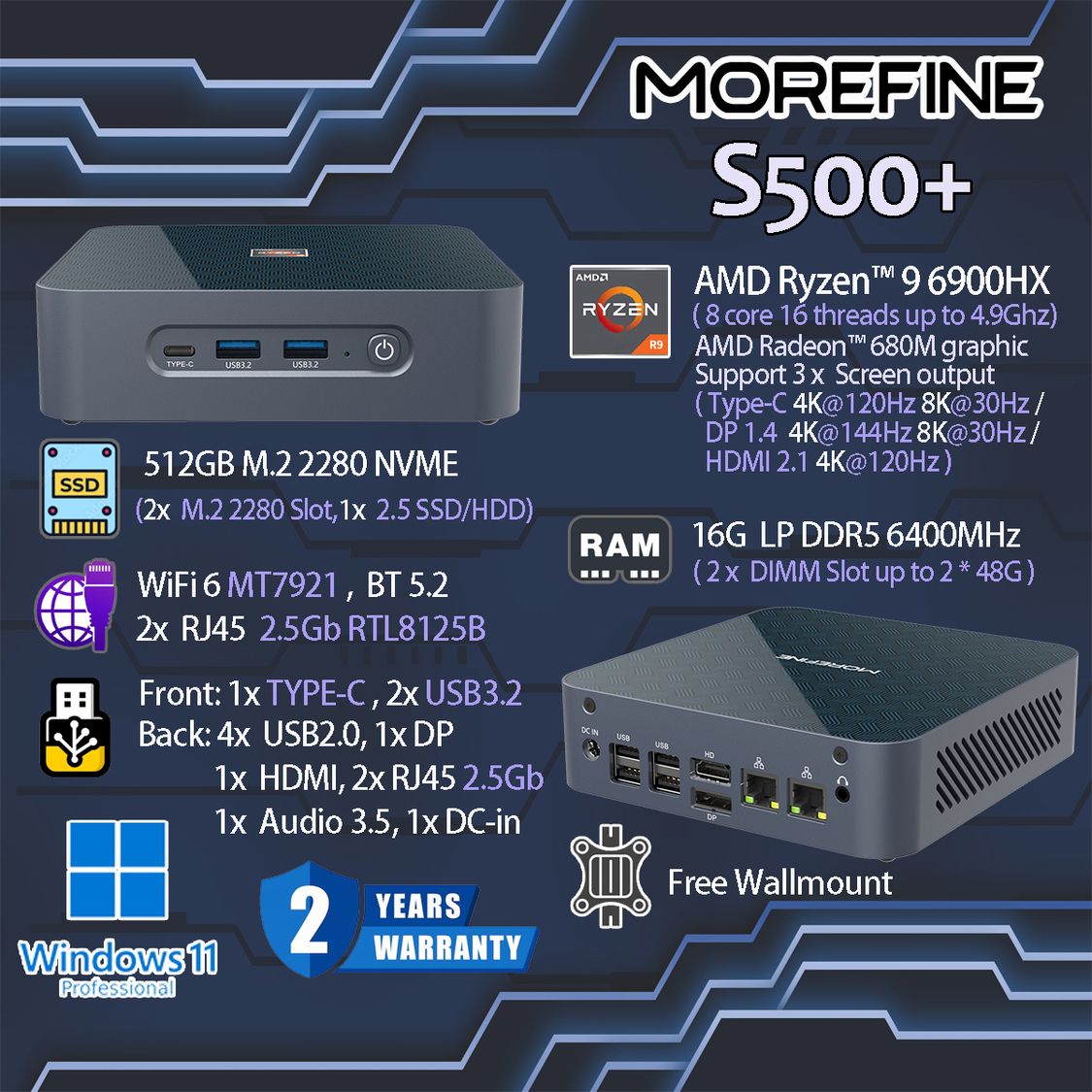 Morefine 摩方 S500+ R9-6900HX 16G LPDDR5 512G M.2 WIFI6 BT5 WIN11 PRO Mini PC 迷你電腦
