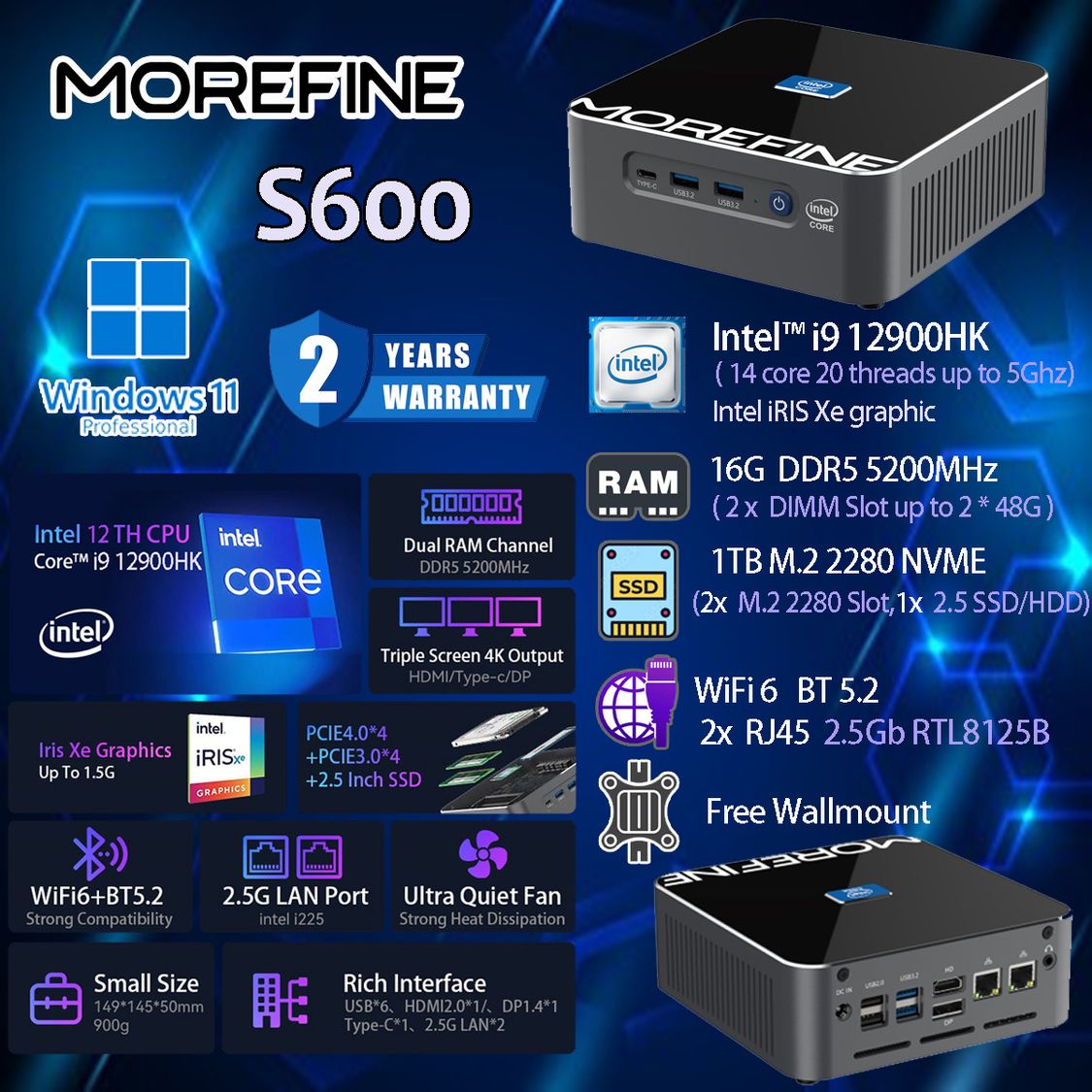 Morefine 摩方 S600 i9-12900HK 16G DDR5 1TB M.2 WIFI6 BT5.3 WIN11 PRO Mini PC 迷你電腦