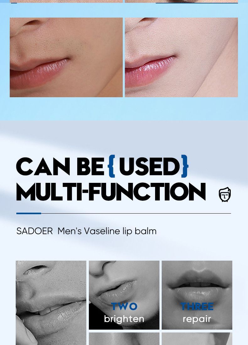 滋潤滋養雙唇,改善乾燥、粗糙、暗沉的唇部狀況,淡化唇紋,提亮唇色,令雙唇水潤柔軟,不干燥,展現男士魅力。