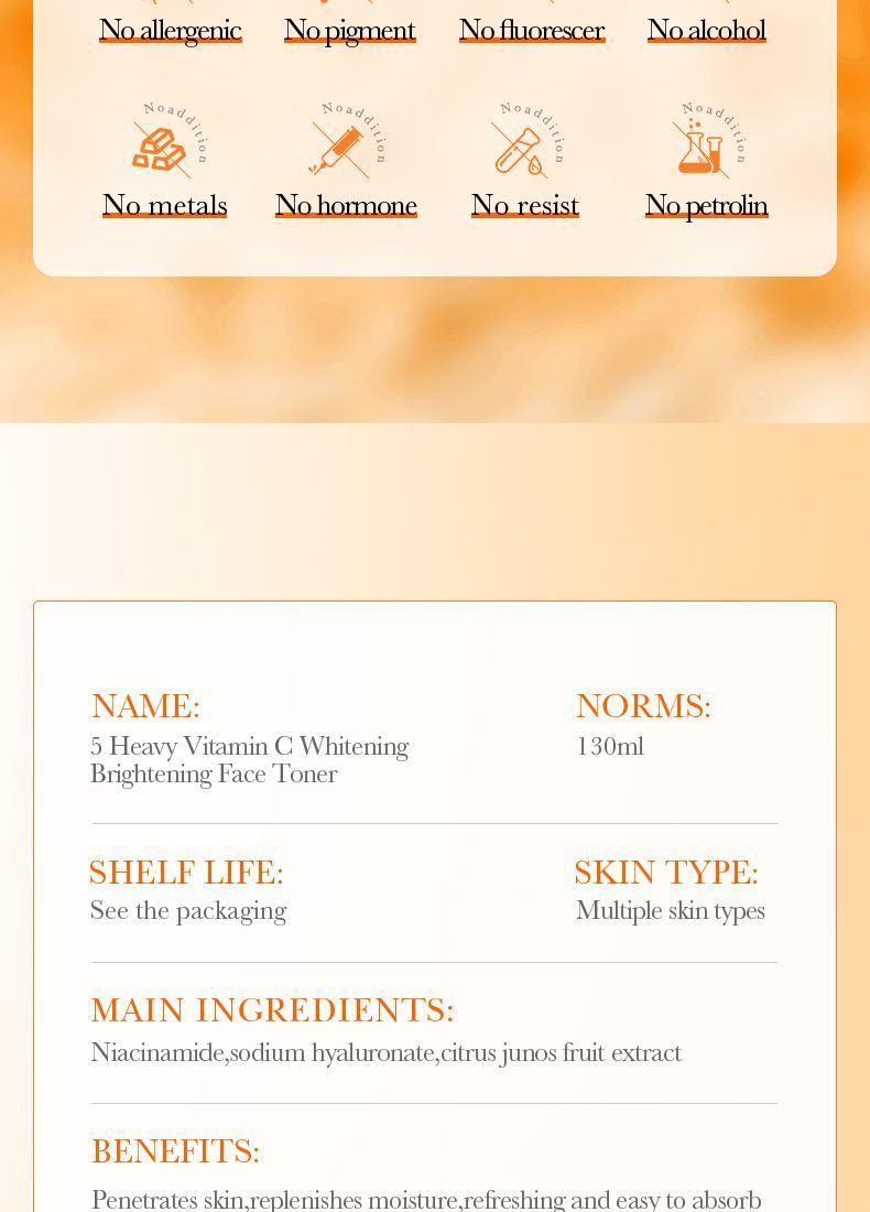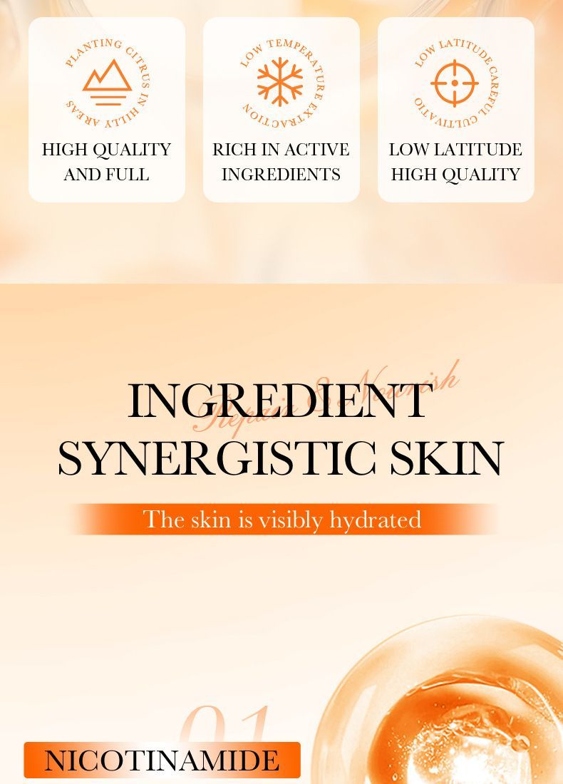 菸鹼醯胺、透明質酸鈉、柑橘果萃取物