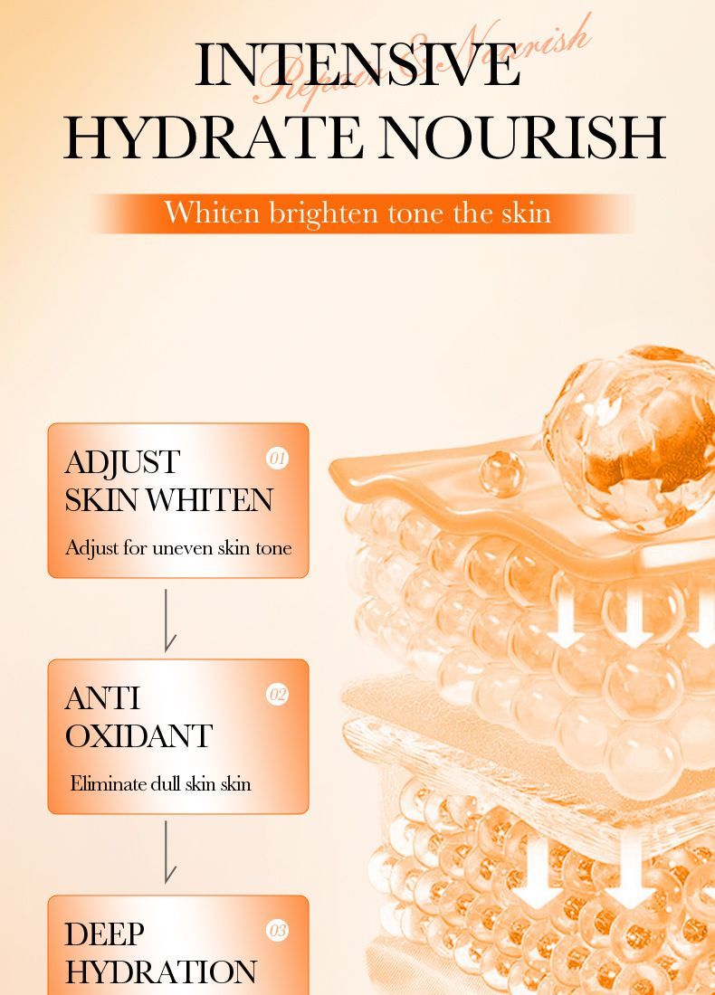 深入滲透肌膚,補充水分,清爽易吸收,美白滋養,修護暗沉受損肌膚,提亮膚色,煥發光彩