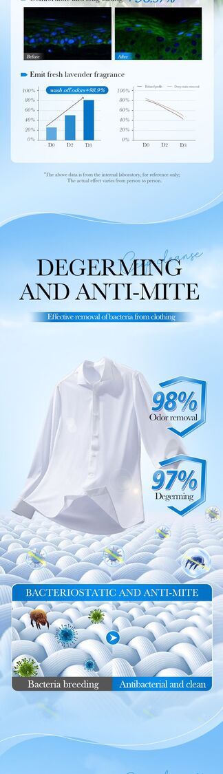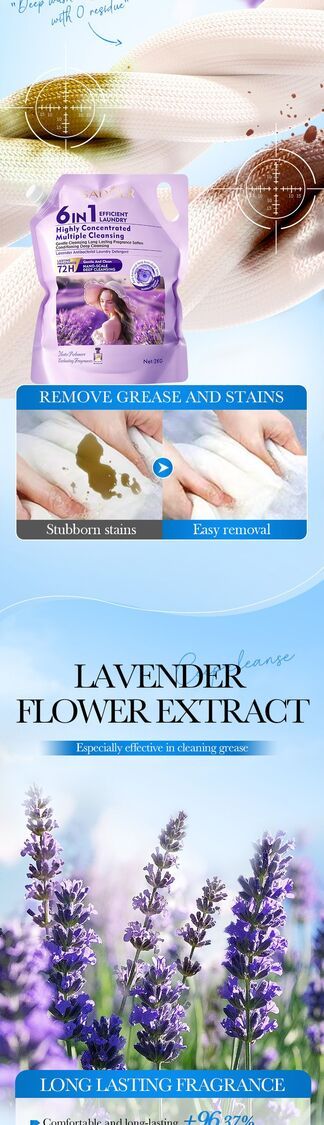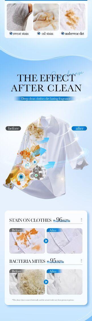 天然皂基配方,溫和親膚,安全呵護衣物和肌膚;深入纖維內部,雙倍分解污漬。