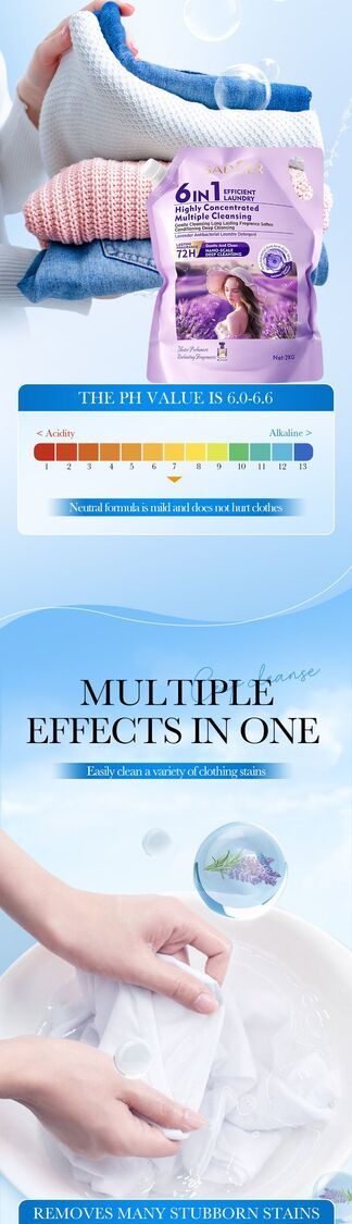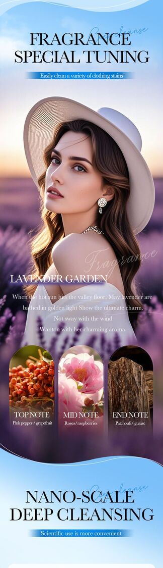 1. 經典香氛,雙倍閃耀光澤,修復纖維損傷,展現優雅巴洛克風格。 2. 溫和親膚,安全呵護衣物和肌膚,深入滲透污漬根源,特別適用於衣物,同時撫平毛躁,保護衣物。 3. 消除纖維內部靜電,洗後衣物更柔軟親膚。