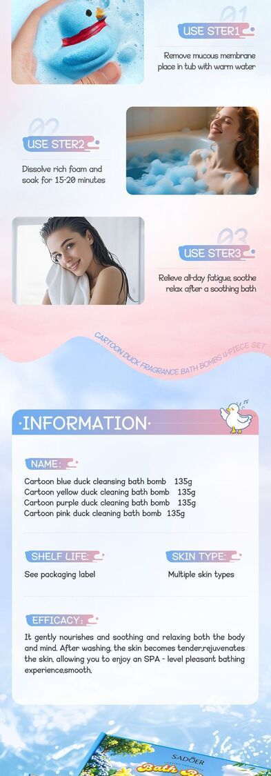 SADOER-卡通鴨子清潔沐浴球 135g*4pcs 浴鹽球