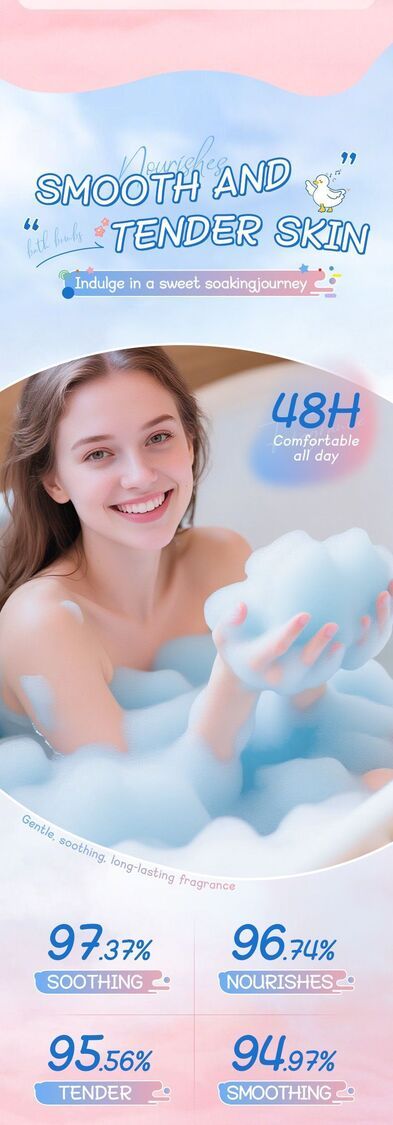 溫和滋養,舒緩身心,放鬆身心。洗後肌膚水嫩,煥發活力,享受SPA級愉悅沐浴體驗,柔滑細膩