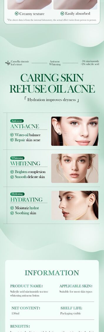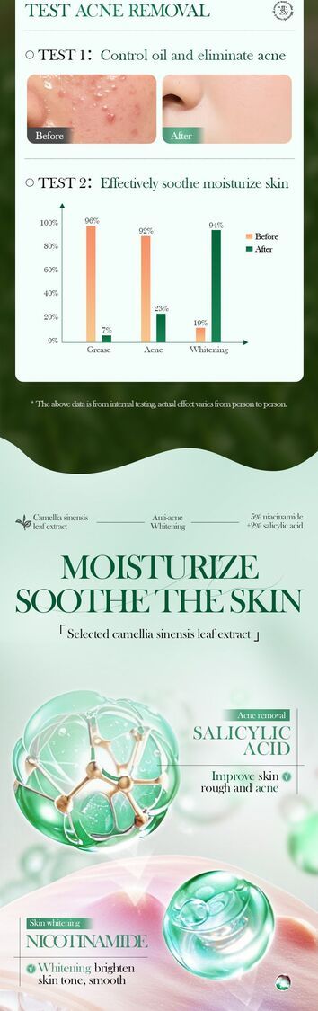 深入滲透肌膚,提供保濕滋養,調節肌膚水油平衡,有效修復粗糙痘痘肌膚,美白提亮膚色,令肌膚光滑細膩。