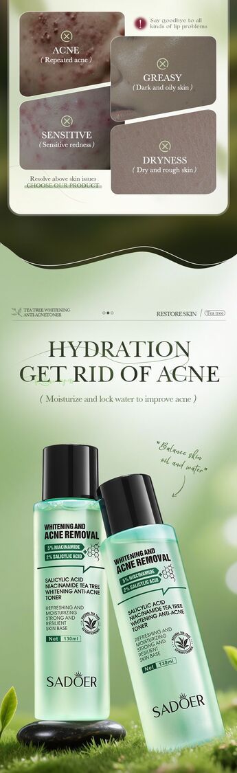 SADOER-水楊酸美白祛痘爽膚水 130ml 菸鹼醯胺 天然茶樹萃取精華