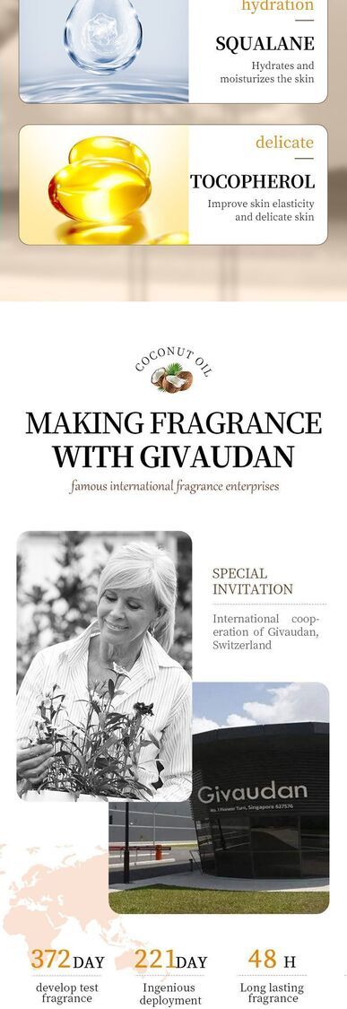 清爽不黏膩,滋潤保護身體肌膚,幫助改善乾燥粗糙的肌膚,讓肌膚柔軟、絲滑、芳香、光澤。