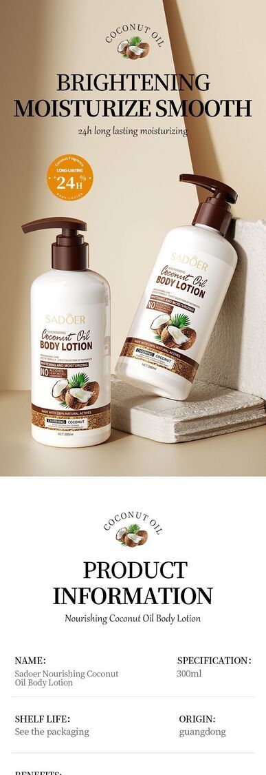 SADOER-椰子滋潤身體潤膚乳 300ml 滋養椰子油身體乳 #6942349713187