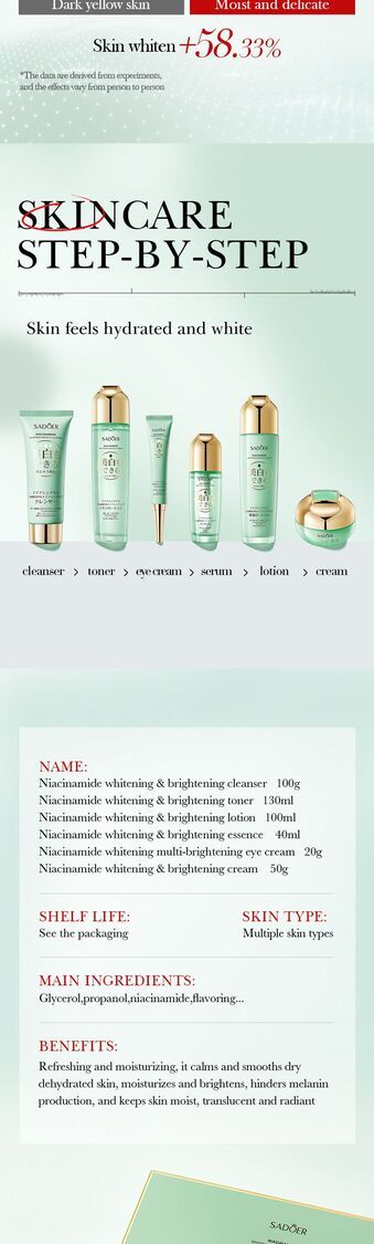 SADOER-菸鹼醯胺美白亮膚6件套 - 節日送禮/白用/交換禮品之選