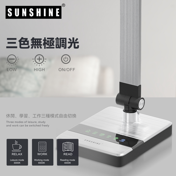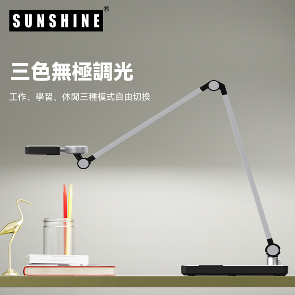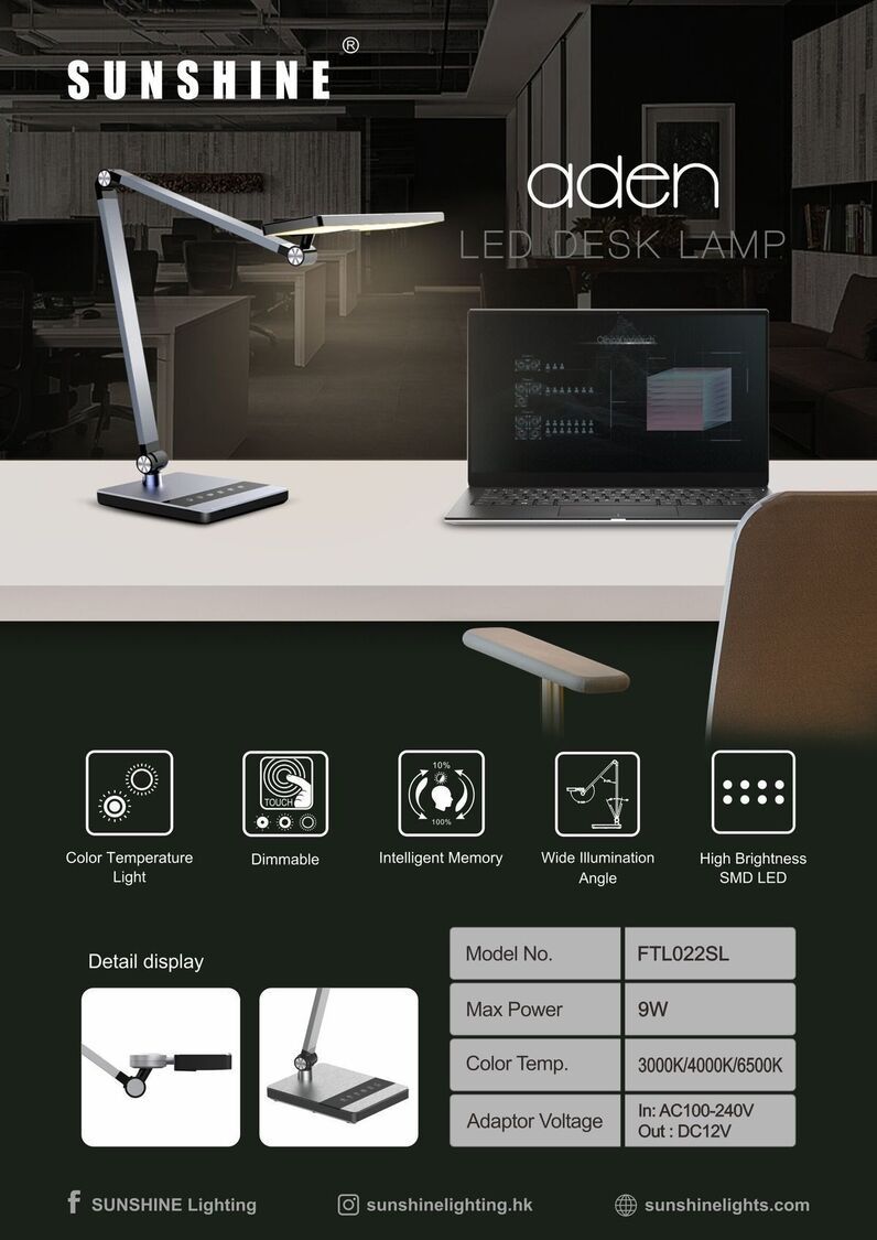 陽光-SUNSHINE FTL022SL (441938)ADEN LED護目枱燈 9W 銀色 多功能可調三種色溫+調光暗 #LED檯燈 #護眼檯燈 #書檯燈 #床頭燈