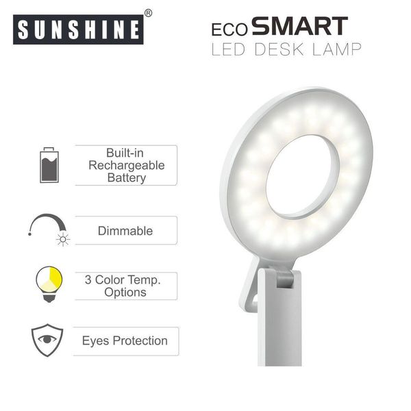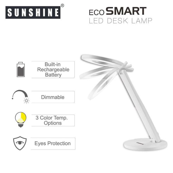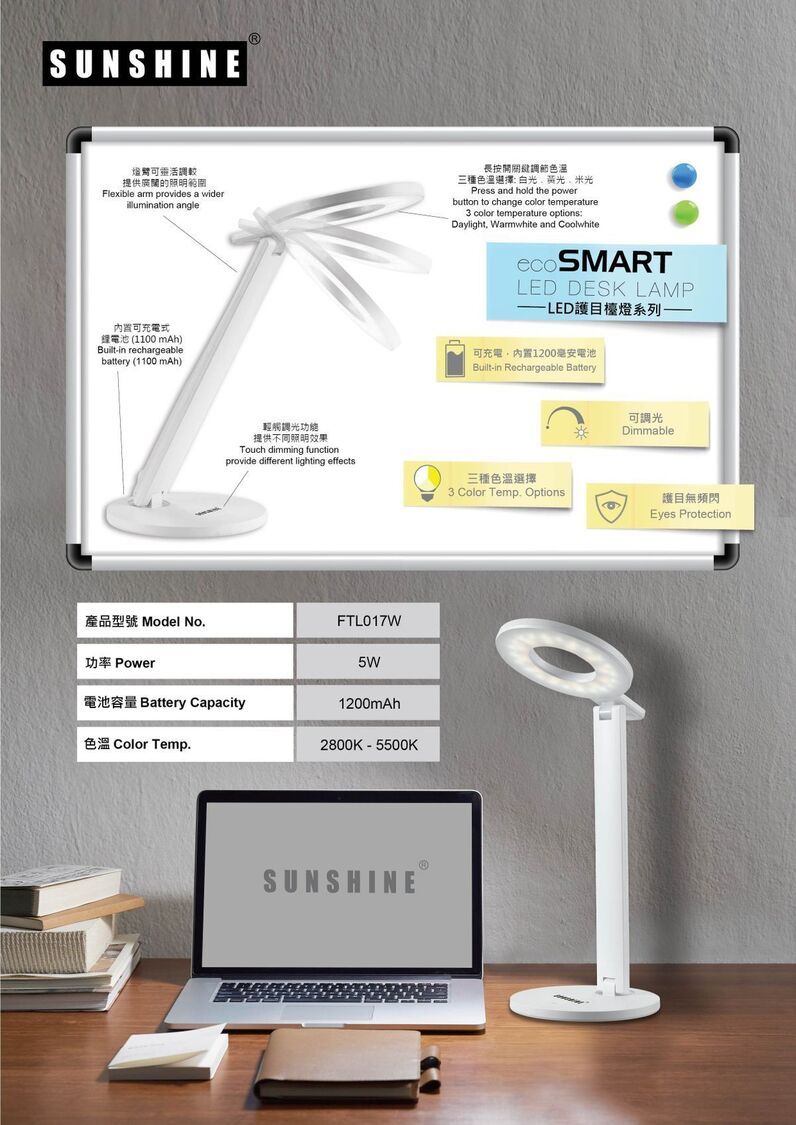 陽光-SUNSHINE FTL017W(437511) ECO SMART LED護目檯燈 5W 白色 多功能可調三種色溫+輕觸調光暗 #LED檯燈 #護眼檯燈 #書檯燈 #床頭燈