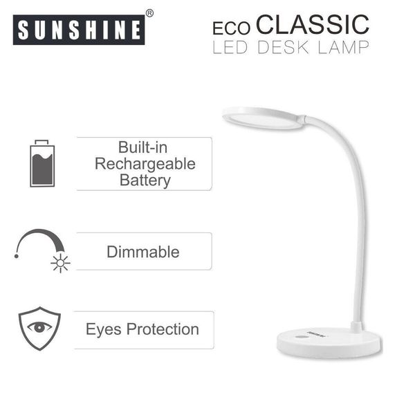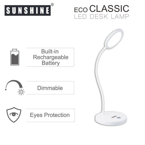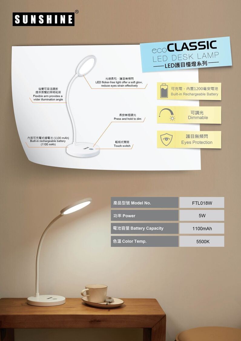 陽光-SUNSHINE FTL018W (437528)ECO CLASSIC LED護目檯燈 5W 白色 白光5500K+輕觸調光暗 #LED檯燈 #護眼檯燈 #書檯燈 #床頭燈