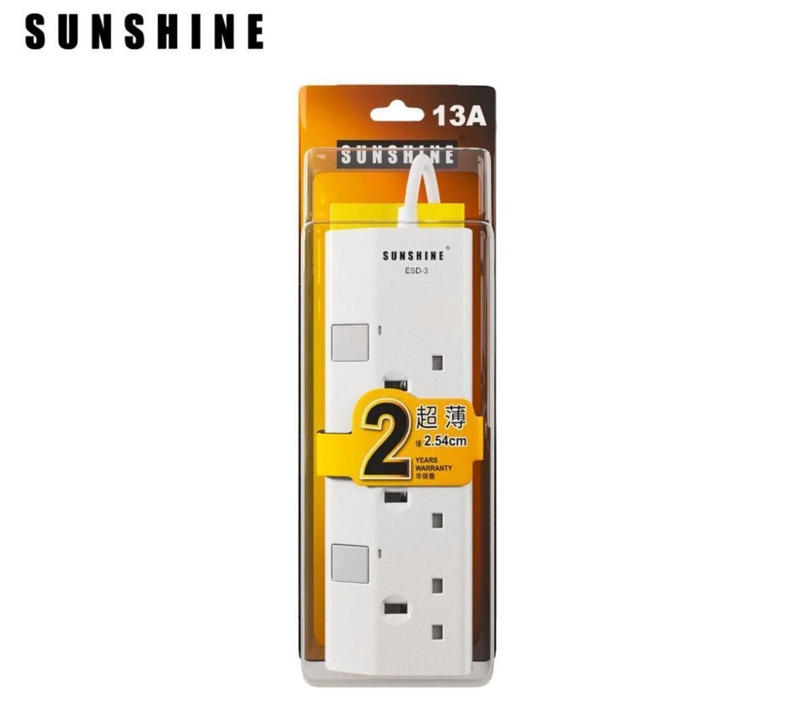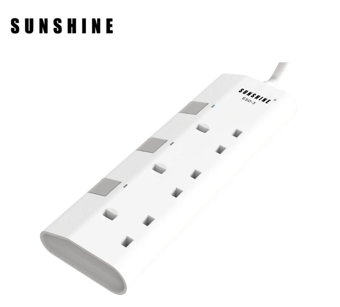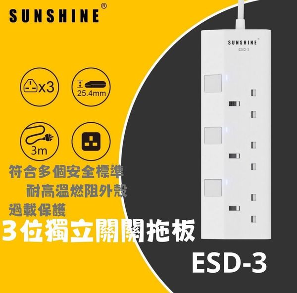 陽光-SUNSHINE ESD-3(446117) 13A 三位獨立開關安全拖板連LED指示燈(白色)(連3米線) 防雷拖板 | 電源插座 | 排插 | 排蘇