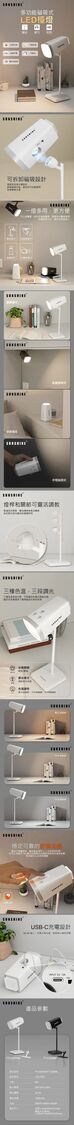 陽光-SUNSHINE FTL025WH (448876)LED可充電多功能磁吸式檯燈 6W 白色 3000-6500K+可調光暗 #掛牆燈 #書檯燈 #床頭燈 #露營燈 #小夜燈 #電筒 #枱燈