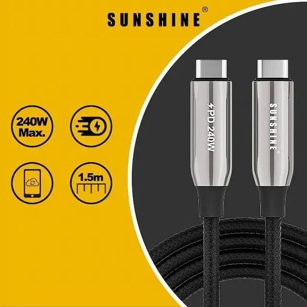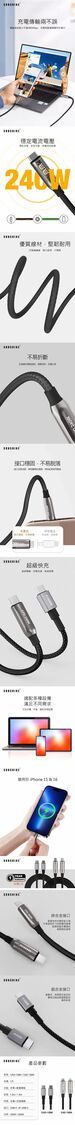 陽光-SUNSHINE CAE-15BK(449309) 黑色1.5米長 PD240W USB-C TypeC快速充電線 #高密度編織 #充電線 #快速充電線 #電源線 #資料傳輸線 #快充線