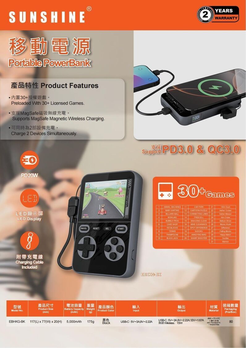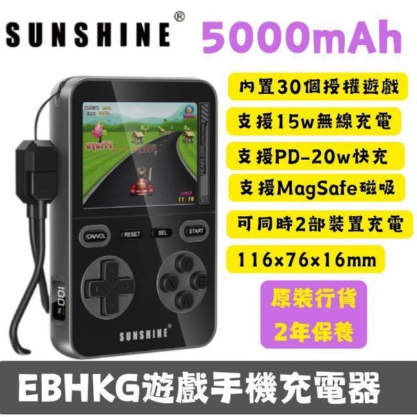陽光-SUNSHINE EBHKG 黑色遊戲機無線充電器 5000mAh(449477) #無線充 #充電寶 #尿袋 #外置電 #移動電源 #IPHONE17適用 #打機 #遊戲 #充電線 #PD