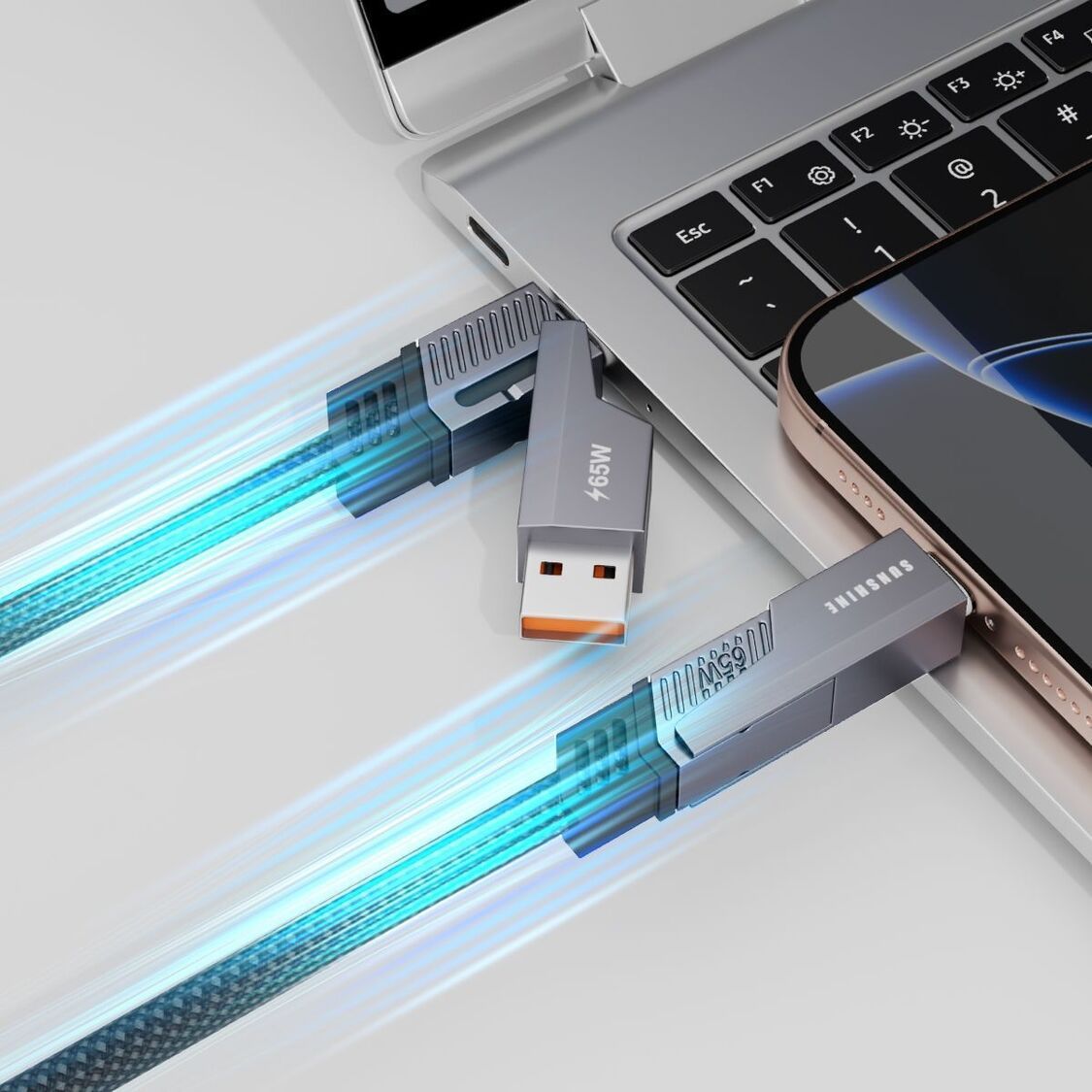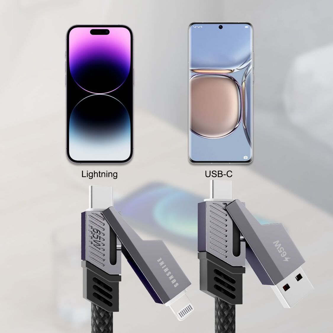 4 合 1 鋅合金高速傳輸充電線, PD65W