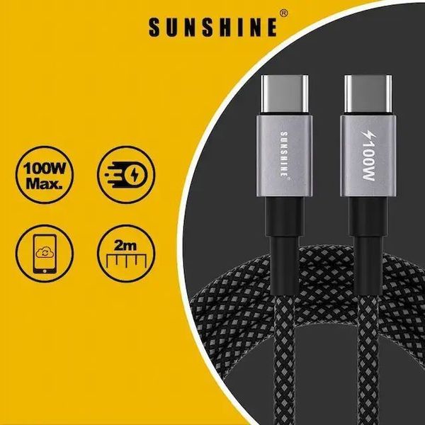 陽光-Sunshine CAD-20BK(450411) 黑色2米長 100W充電線 USB-C TypeC快速充電線 #高密度編織 #充電線 #快速充電線 #電源線 #資料傳輸線 #快充線