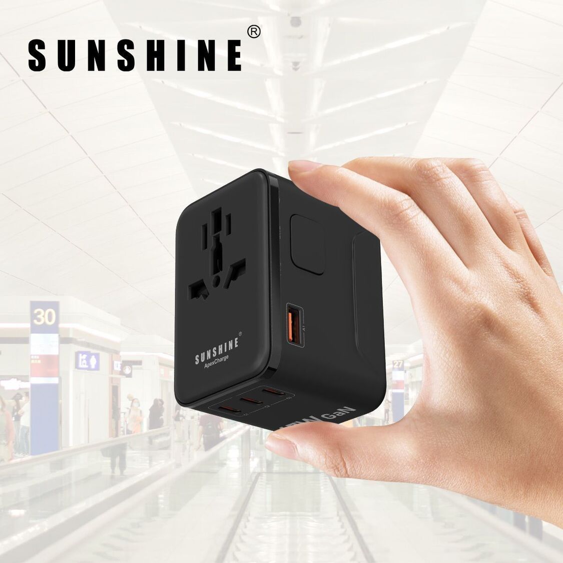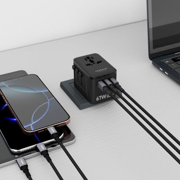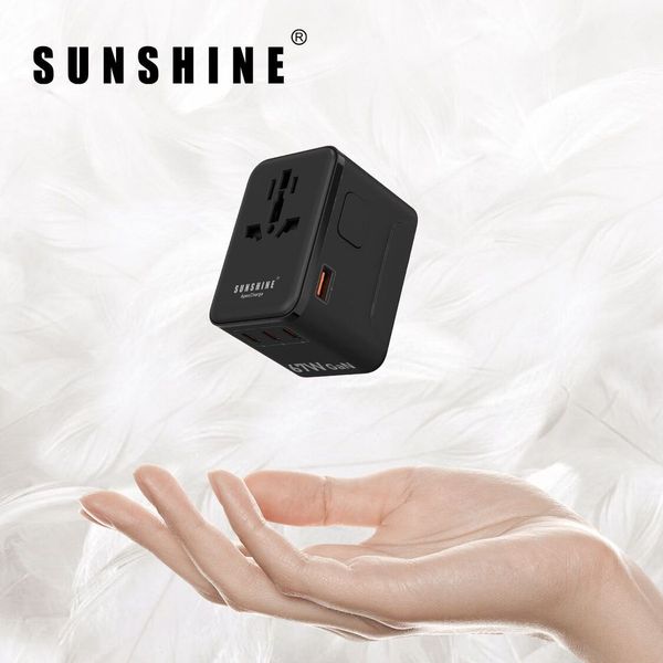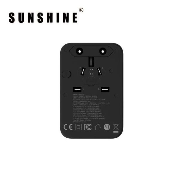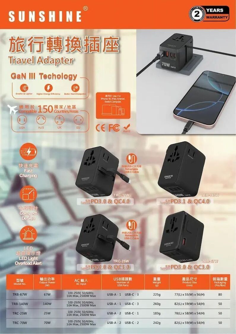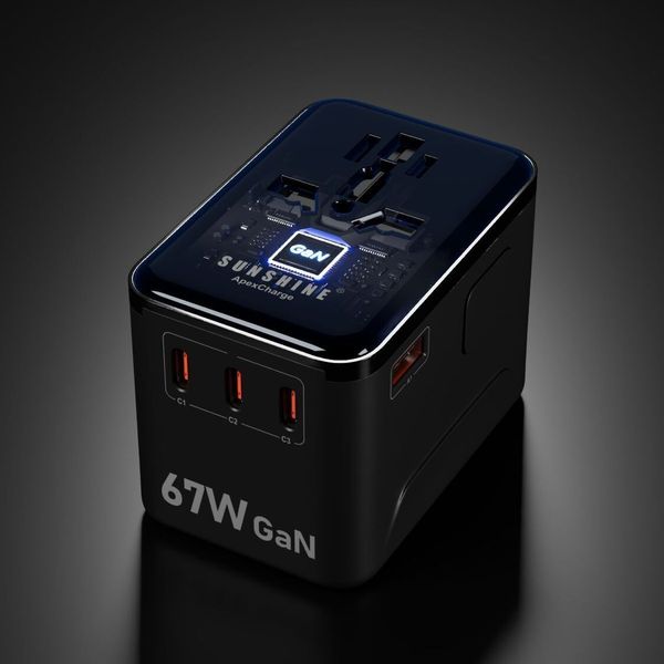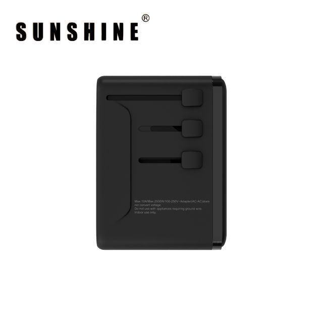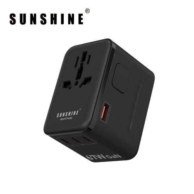 陽光-SUNSHINE TRB-67W (450503)PD67W GaNIII QC3.0 ApexCharge快充通用旅行轉插 4Ports 3C1A 旅行插座 黑色 內置英美歐 日本 澳洲插座