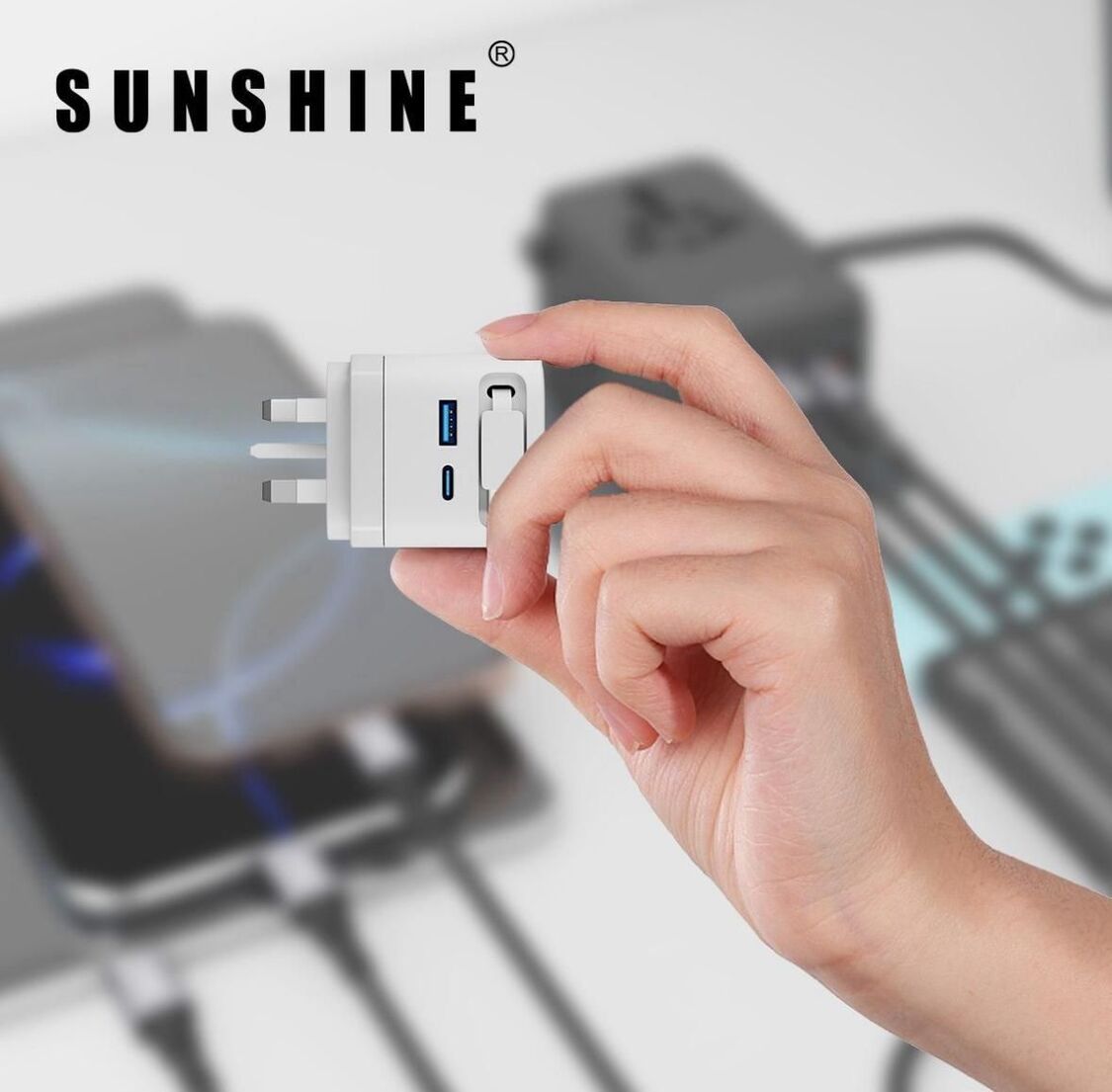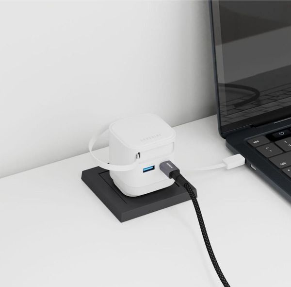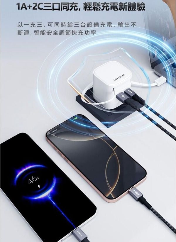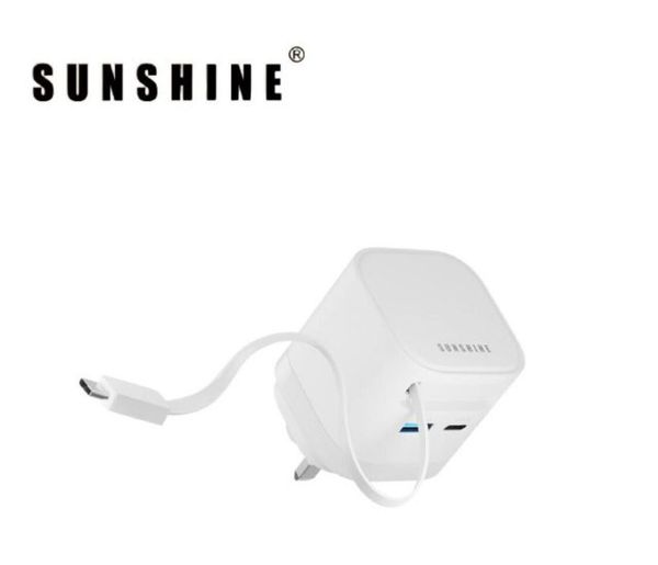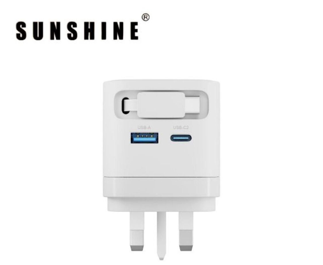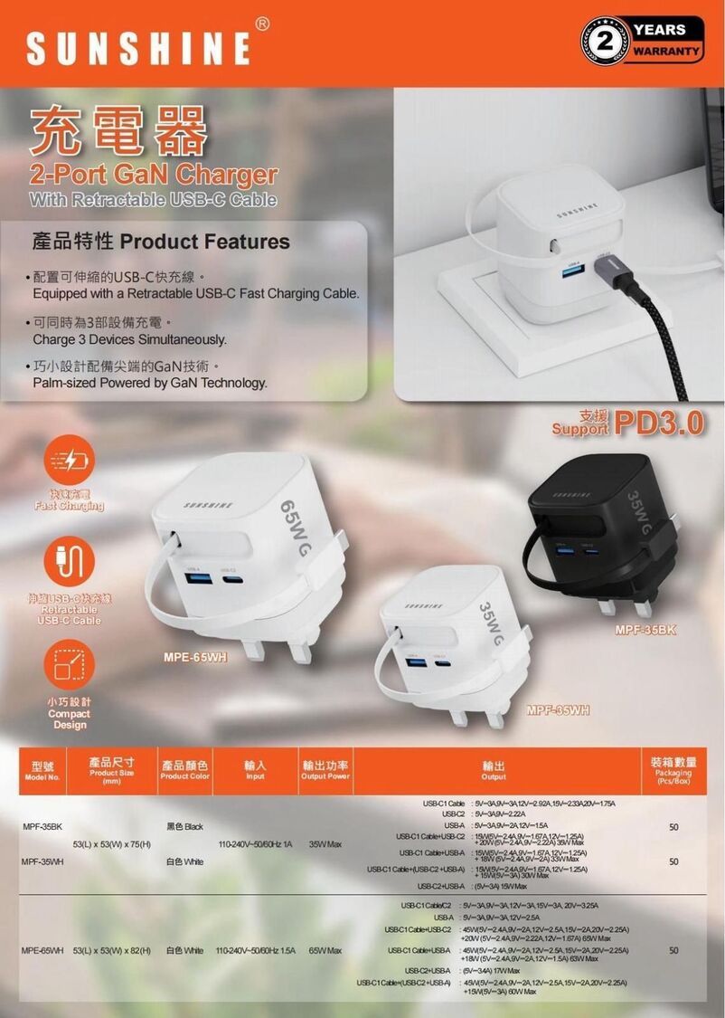 - 巧小設計,內置可以伸縮的USB-C快充線 及 1個 USB-C & 1個 USB-A