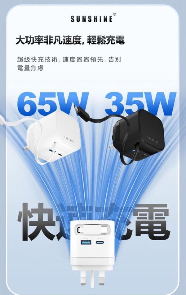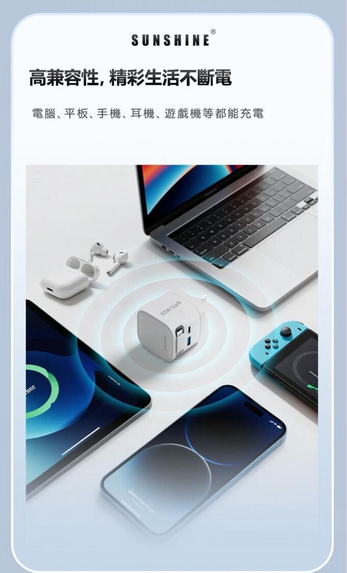 - 支援最大USB-C PD3.0 65W快充獨立輸出。